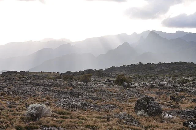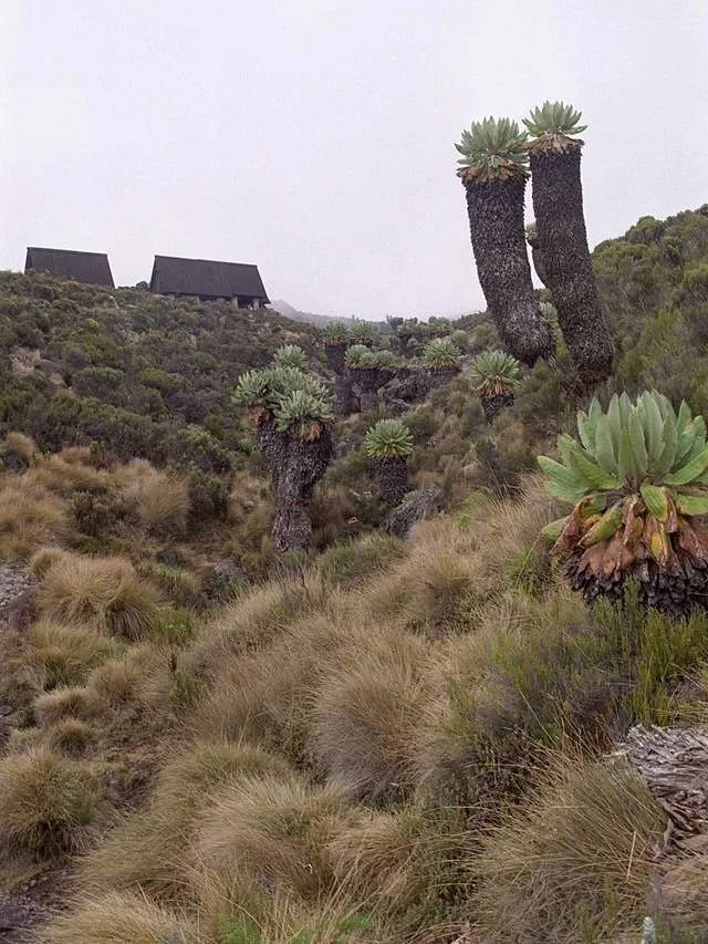 Enveloping the mountain is the lush expanse of the Montane forest, a verdant sanctuary teeming with diverse flora and fauna. Here, amidst the dense foliage, one encounters an array of species such as the white-necked raven, white Colobus monkey, Blue monkey (also known as the Diademed monkey), the Four-striped mouse, and the elusive Bush Baby. Towering above are majestic trees like junipers, sycamores, and ferns, accompanied by swathes of moss commonly referred to as "old man's beard." The Montane forest, with its unpredictable rainfall and ever-changing nature, blankets the lower slopes of the mountain, encompassing the initial campsites.